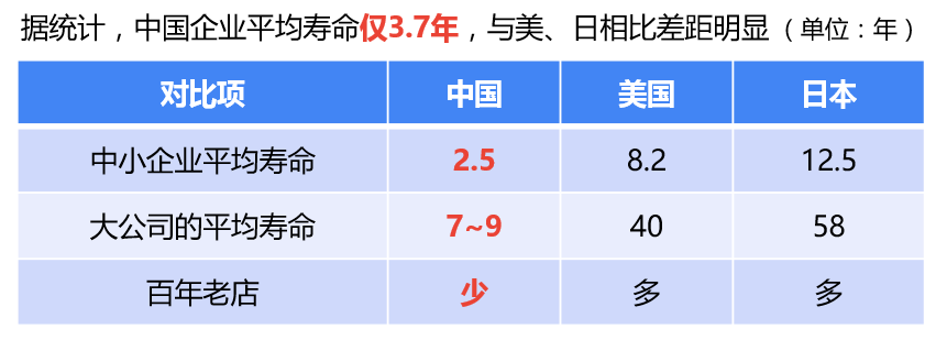 19、乱追热点, 不重视时间价值维度的决策,导致企业生命周期短的浪费。据统计中国企业的平均寿命为3.7年,中小企业平均寿命只有2.5年;大公司的平均寿命也只有7~9年,与美日相比还有很大的差距。大量企业的倒闭不是资不抵债,而是资金流断链。大量网红品牌快速消亡,源于未能及时转换为可持续生财的系统资产。
